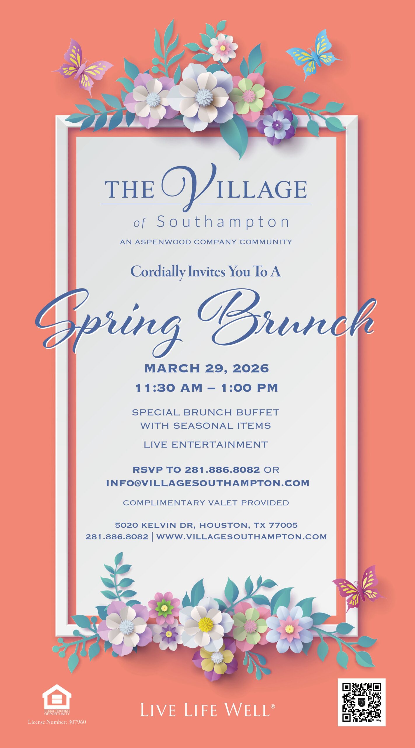 The Village of Southampton 5020 Kelvin, HoustonMarch 29, 2026 11:30 AM - 1:00 PM RSVP to 281.886.8082 or info@villagesouthampton.com