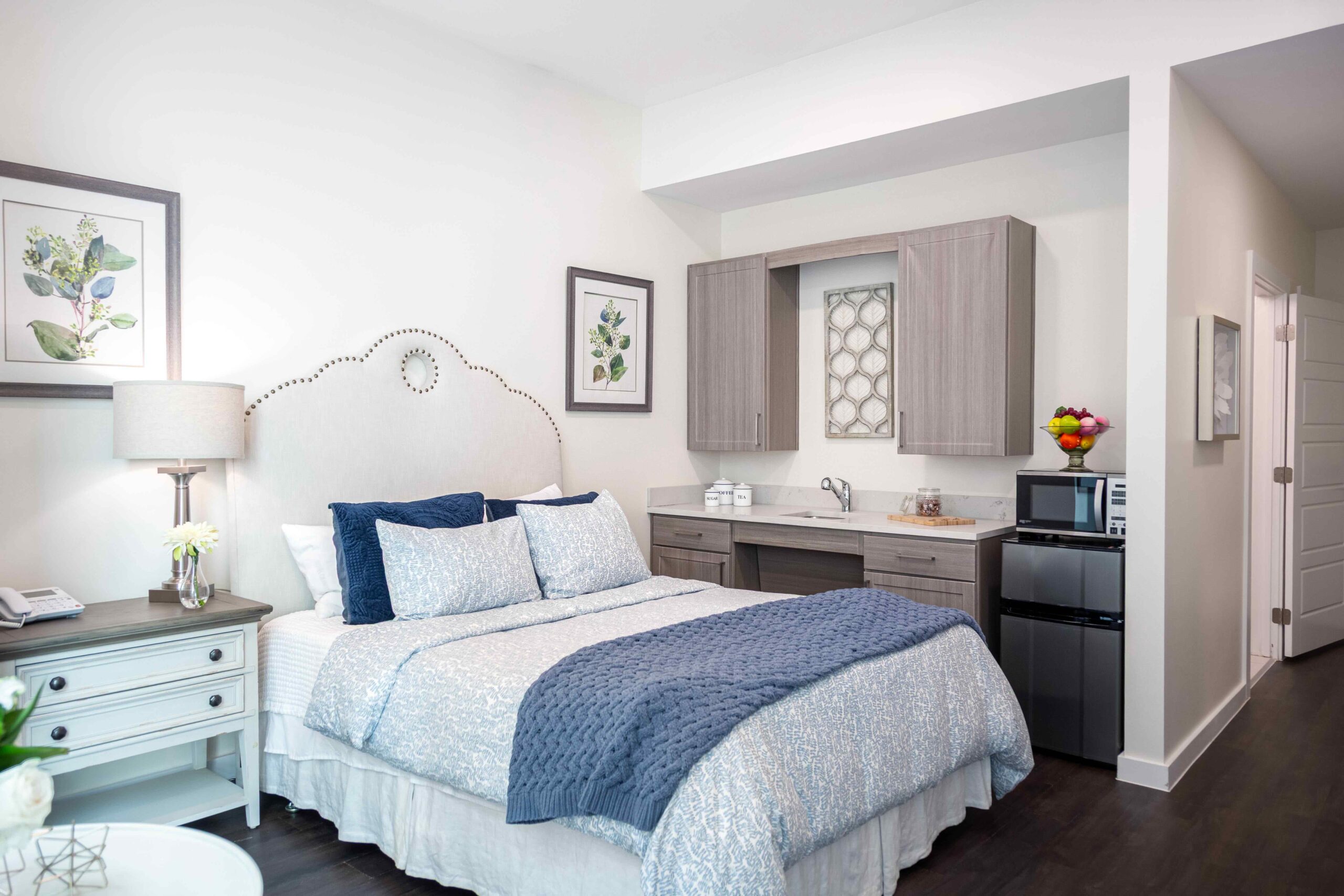 Members of our Memory Care program, reside in the comfort of the Parcside at The Village of Southampton in a secured, nurturing environment for residents with Alzheimer’s or other forms of dementia. Our Memory Care suites are designed with comfort, safety, and convenience in mind, offering a range of floor plans from 379 to 564 square feet. Learn more Each suite features walk-in showers with built-in benches and safety bars, in-home cable and WiFi connections, and an emergency response pendant equipped with a fall indicator and call system for added peace of mind. Plus, our Memory care community is pet-friendly.